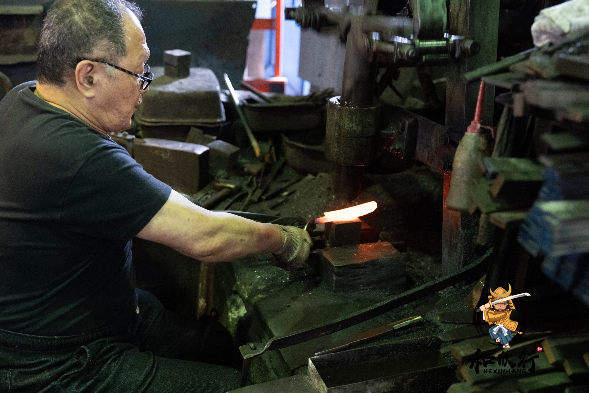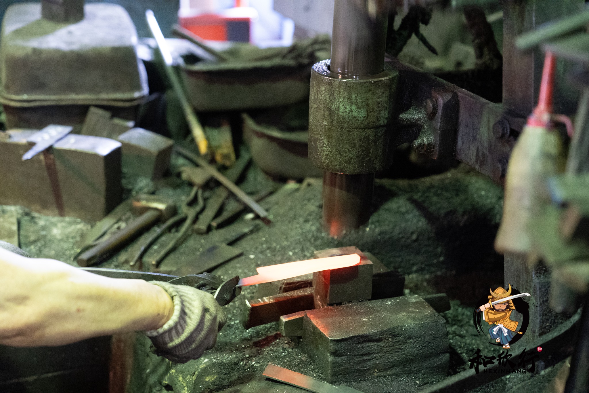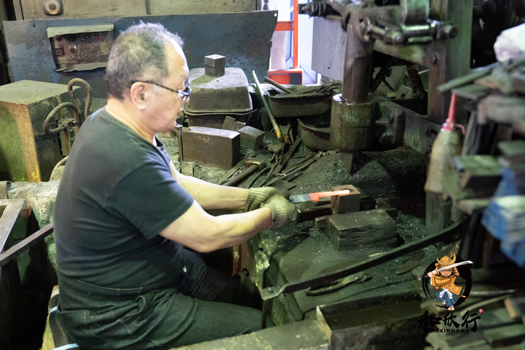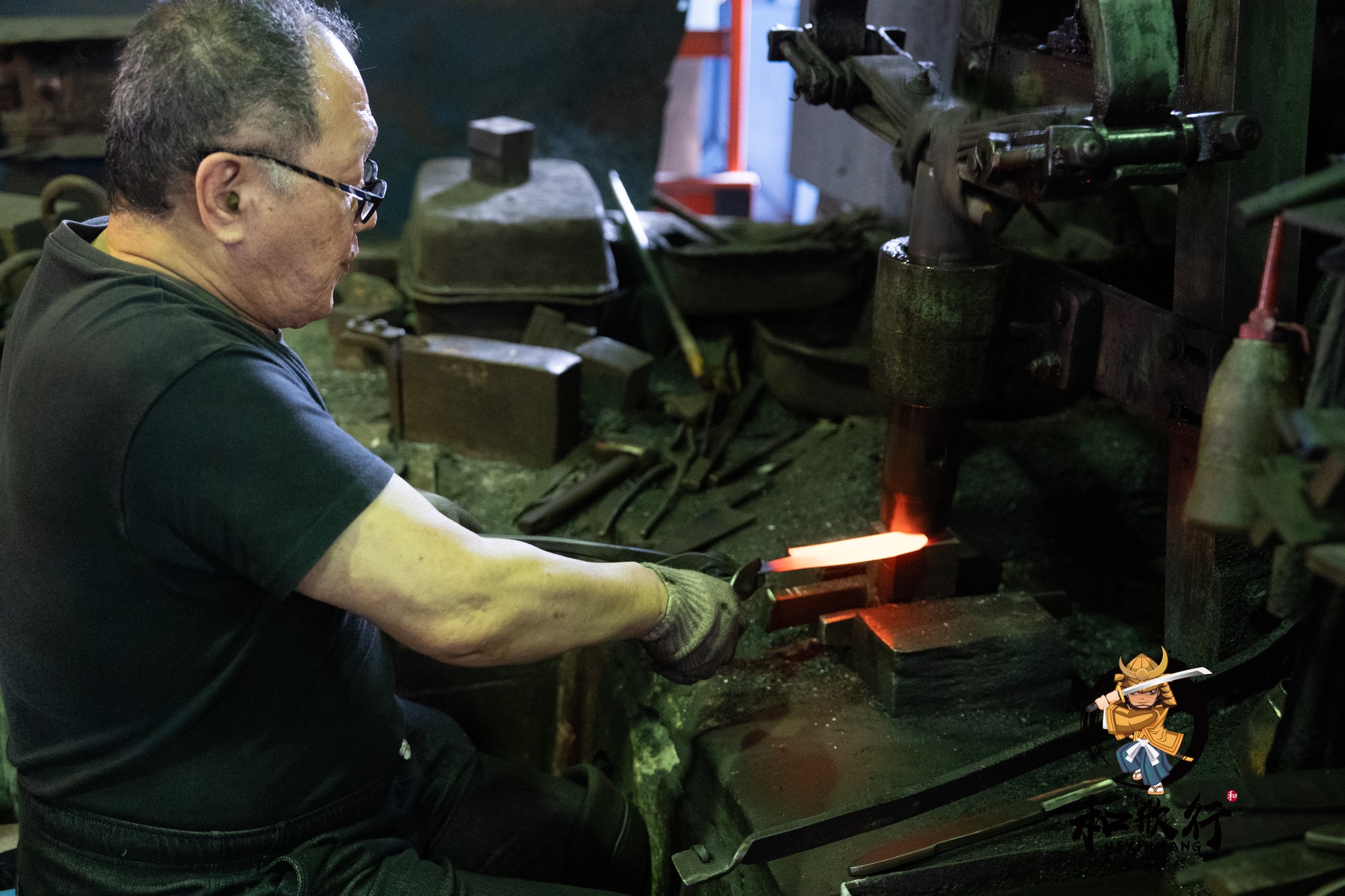 我們剛好在鍛造時段抵達,因此非常幸運地看到山塚先生正在鍛造: