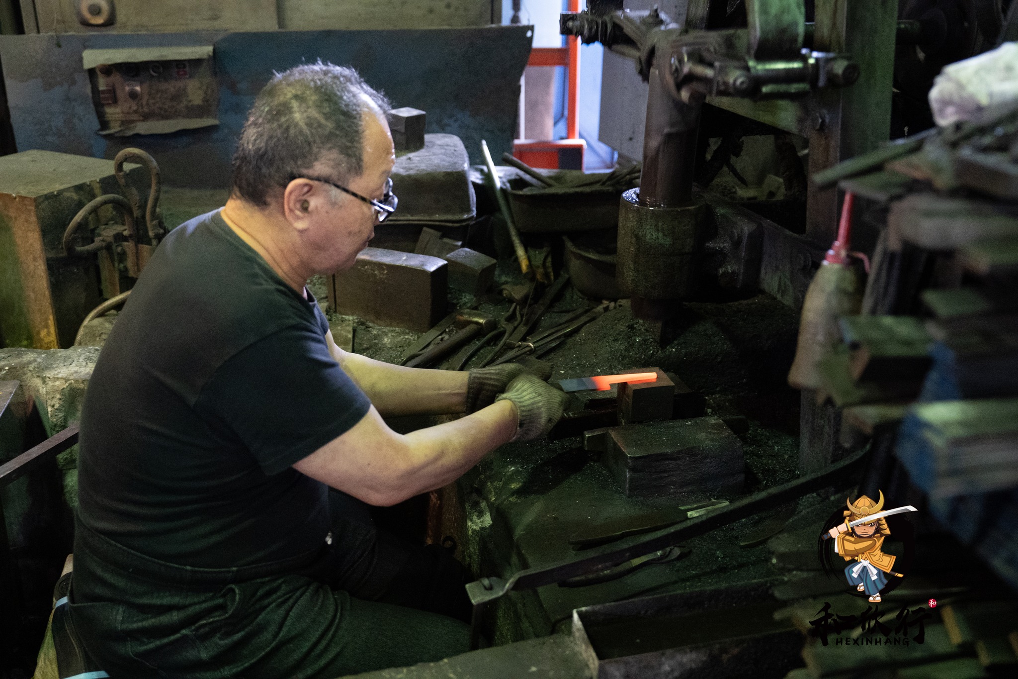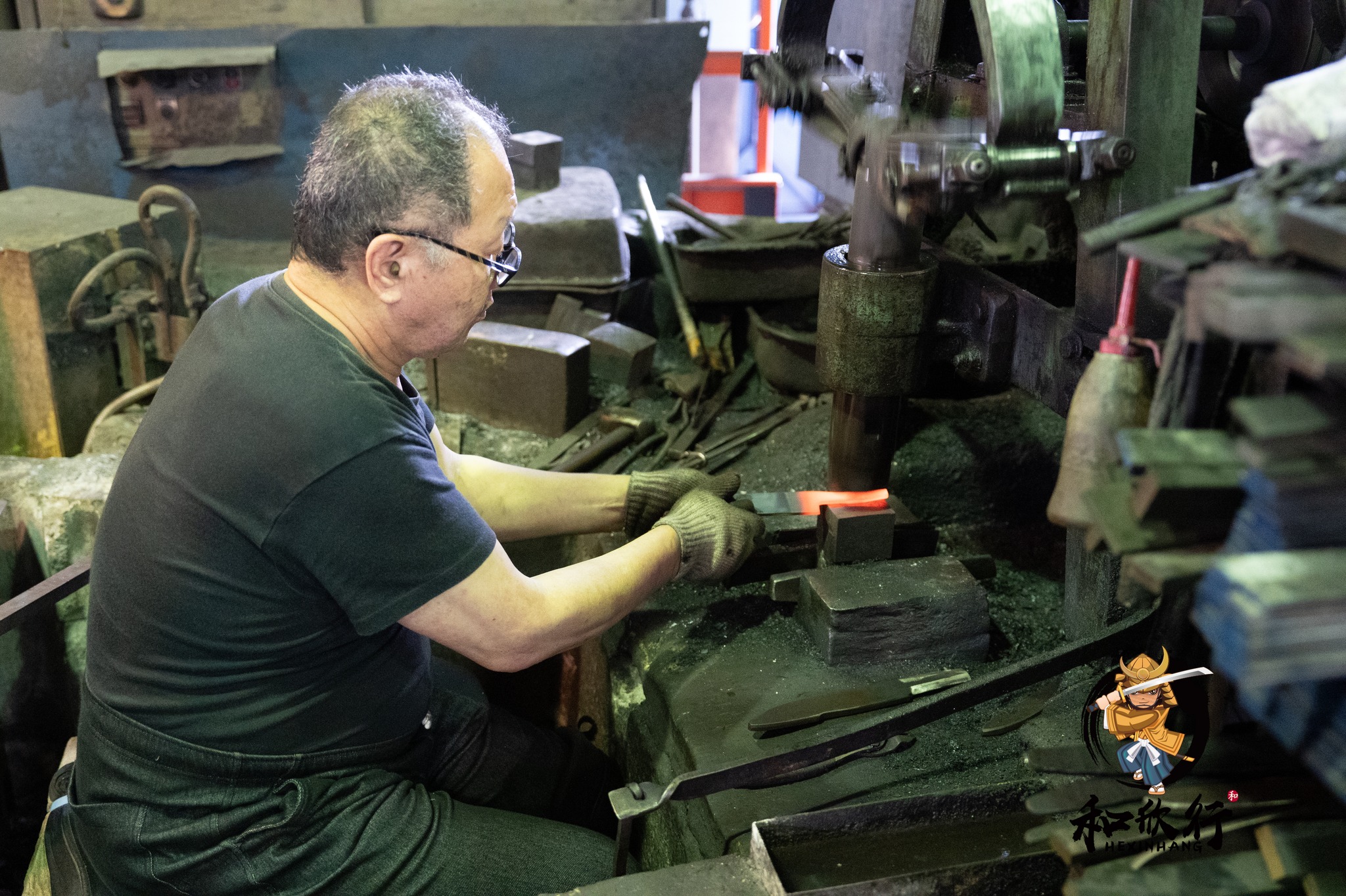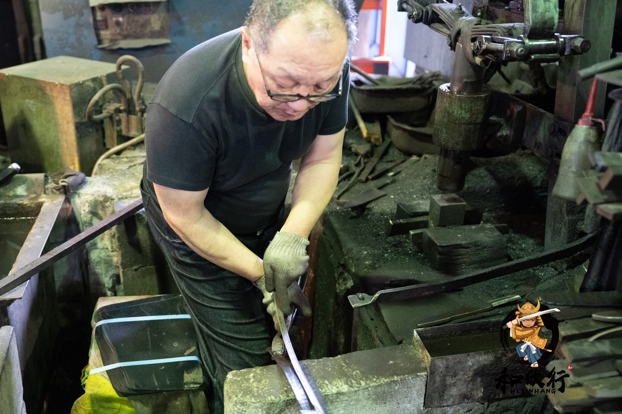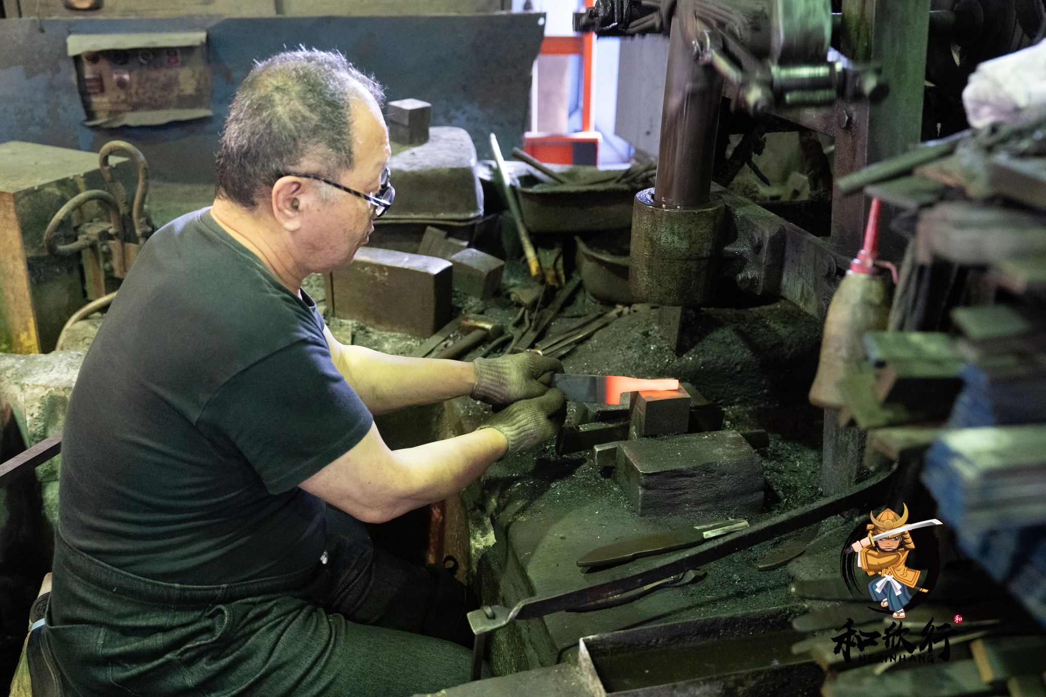 我們剛好在鍛造時段抵達,因此非常幸運地看到山塚先生正在鍛造: