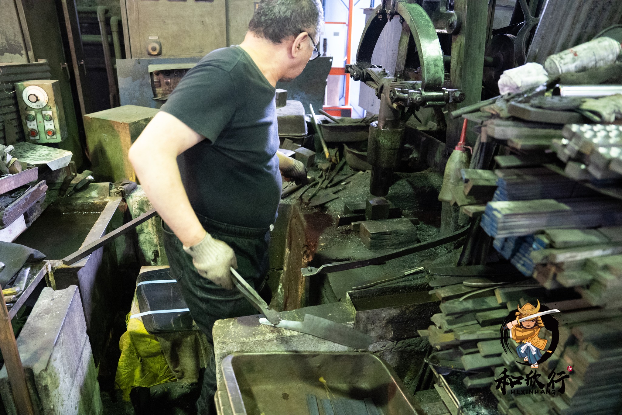 走進工坊立刻感受到這裡生產規模大、節奏快,人手多、空間大、刀胚量驚人。