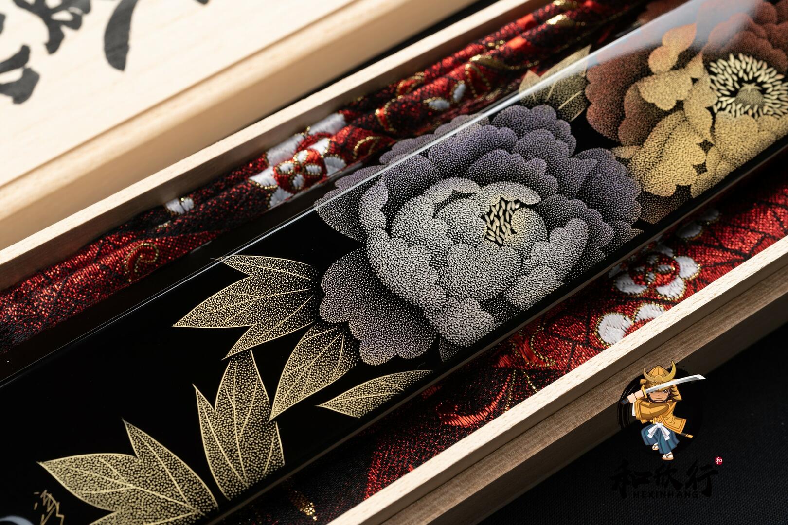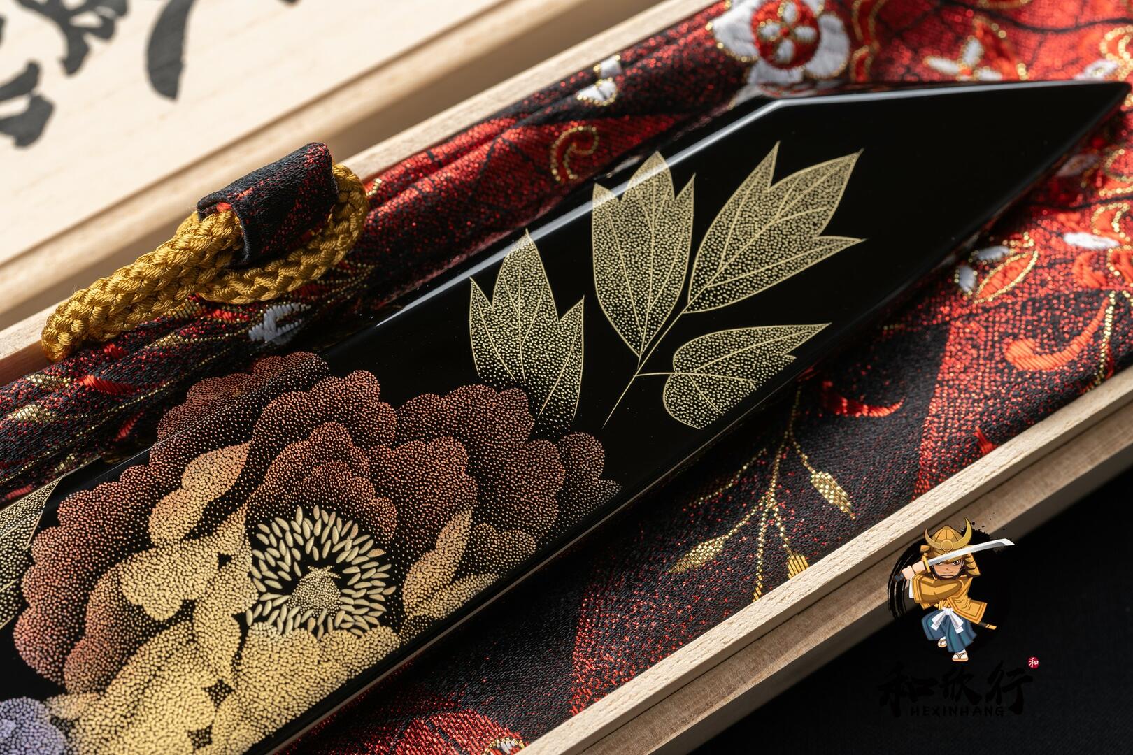 配上輪島塗沉金牡丹鞘與可拆式黑檀三銀輪柄。