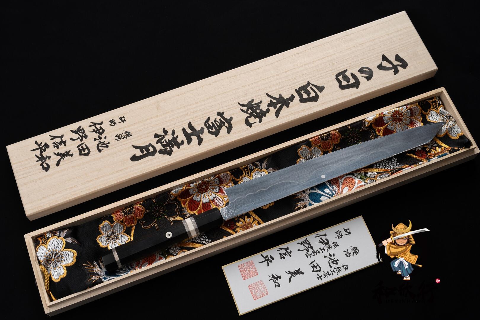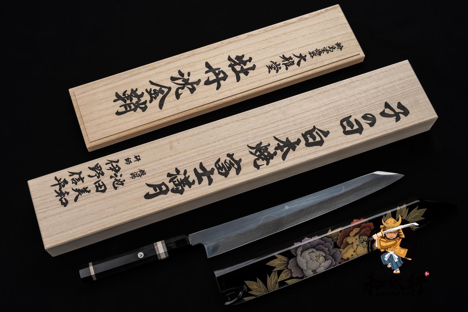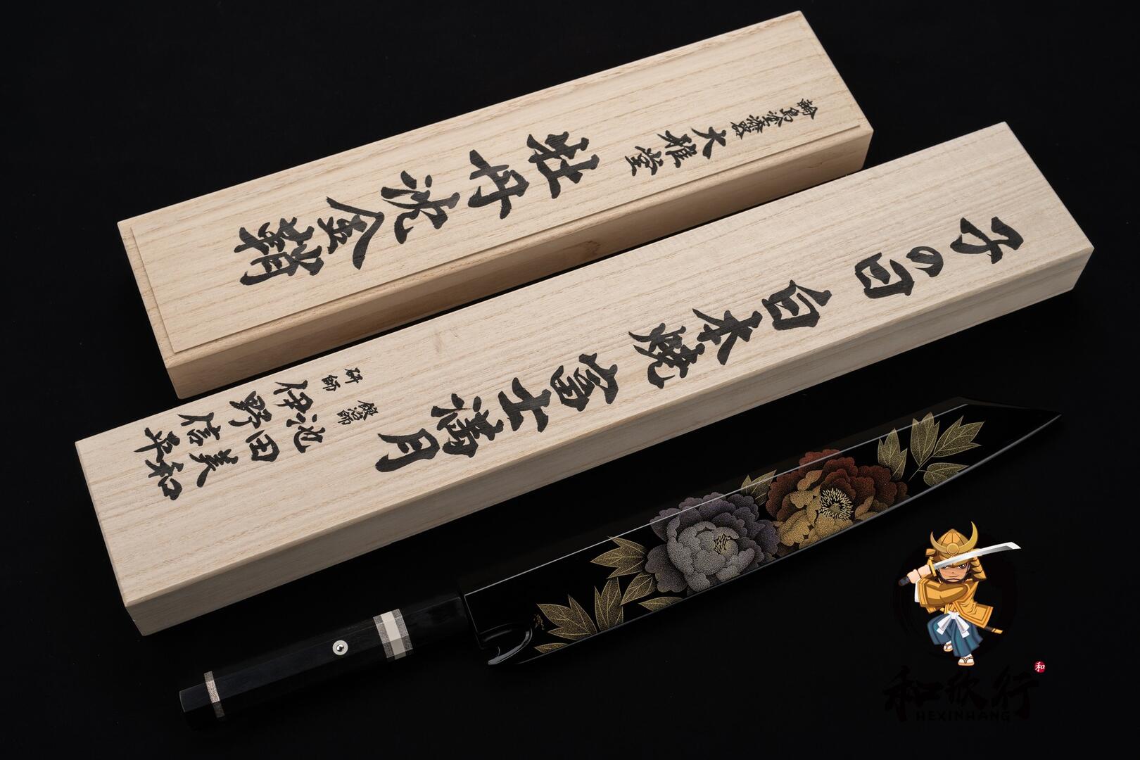 Paired with Wajima lacquer peony saya and detachable ebony triple-silver handle.